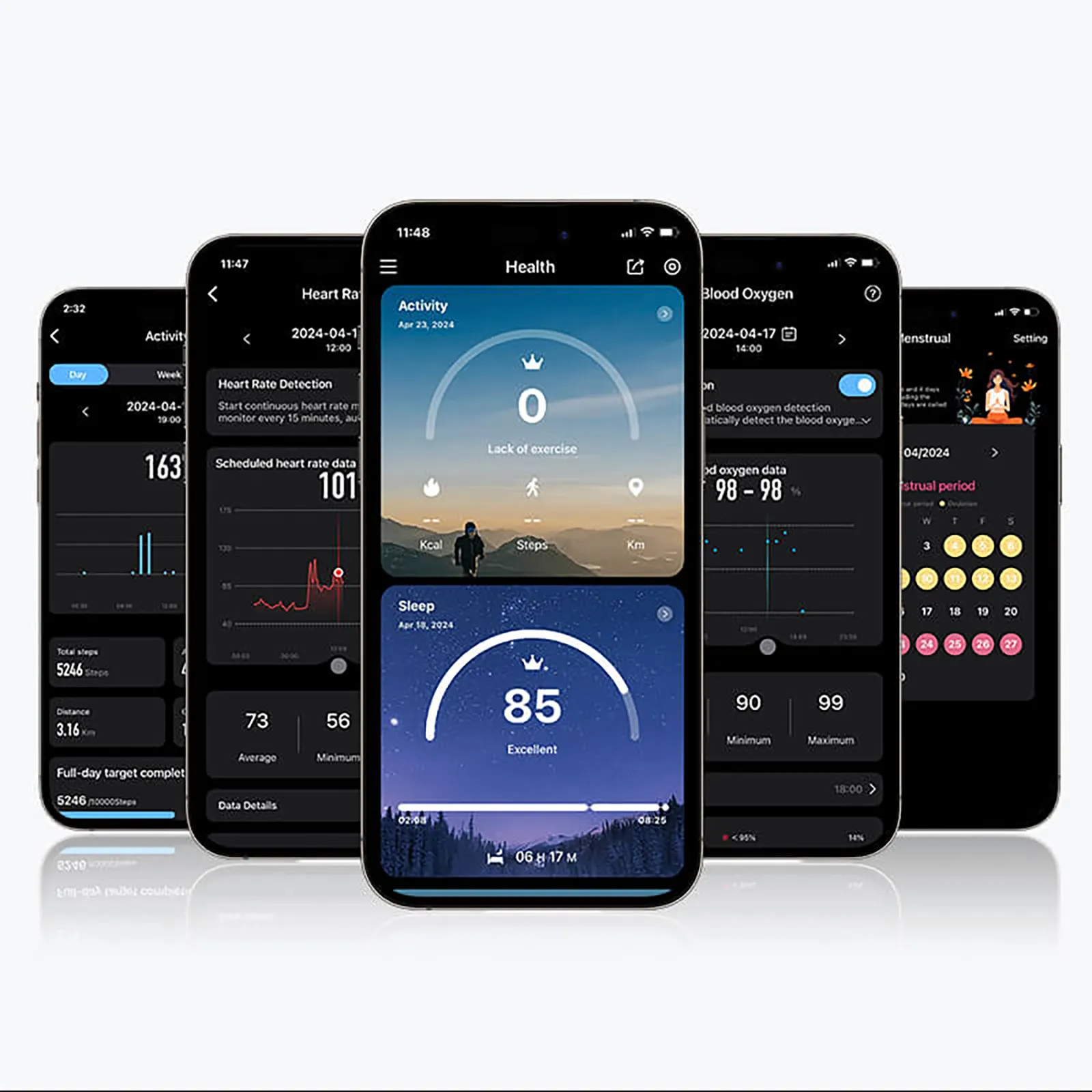 - Comprehensive Health Monitoring-24/7 heart rate, blood oxygen, and sleep tracking for ultimate wellness insights.